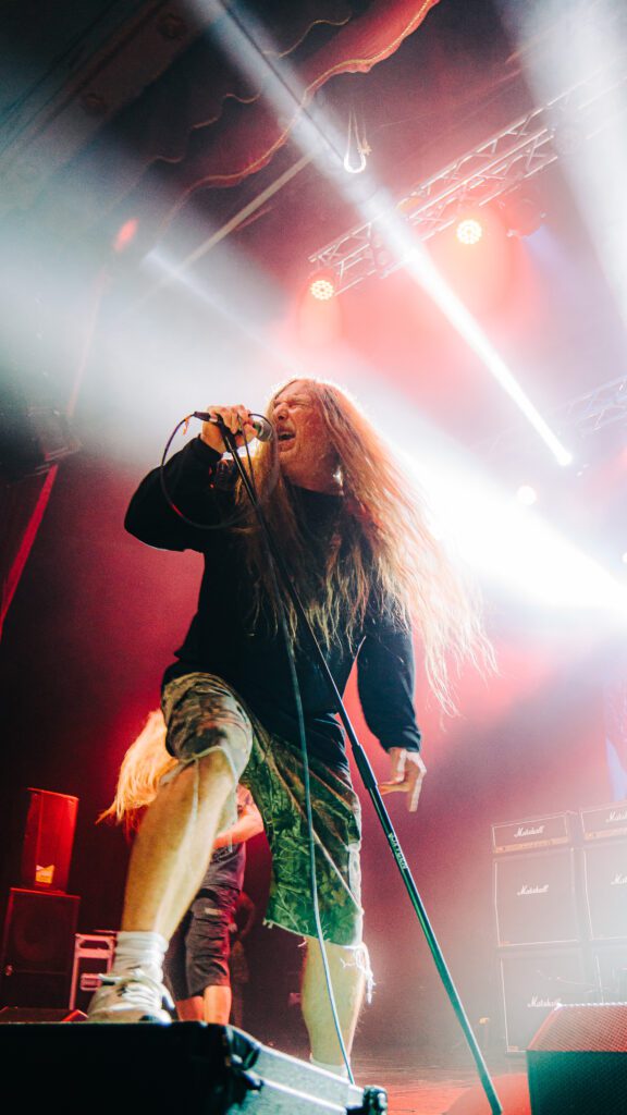 Con un lleno total, el ambiente en el Cariola era de absoluta expectación. Al sonar los primeros acordes de “Redneck Stomp”, el recinto se transformó en una masa uniforme de cabezas agitándose. Los músicos, descritos como auténticos “genios” de sus instrumentos, ofrecieron una cátedra de Death Metal, con una comunicación fluida y una ejecución que no dejó espacio a dudas sobre su vigencia.