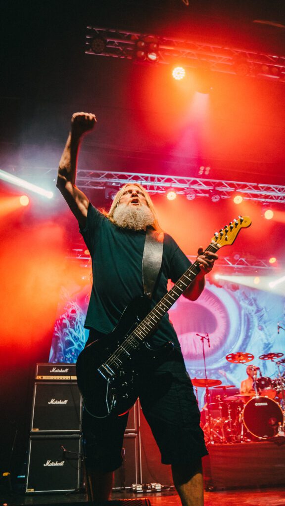 La apertura estuvo a cargo de los locales Cerberus, quienes entregaron una presentación calificada por los asistentes como “impecable”. La banda aprovechó la vitrina para mostrar material de su más reciente trabajo, demostrando un afiato sonoro de primer nivel y un carisma que conectó de inmediato con el público. La recepción fue especialmente cariñosa, destacando la fraternidad entre los músicos y una fanaticada que respondió con energía a cada tema de la agrupación chilena.